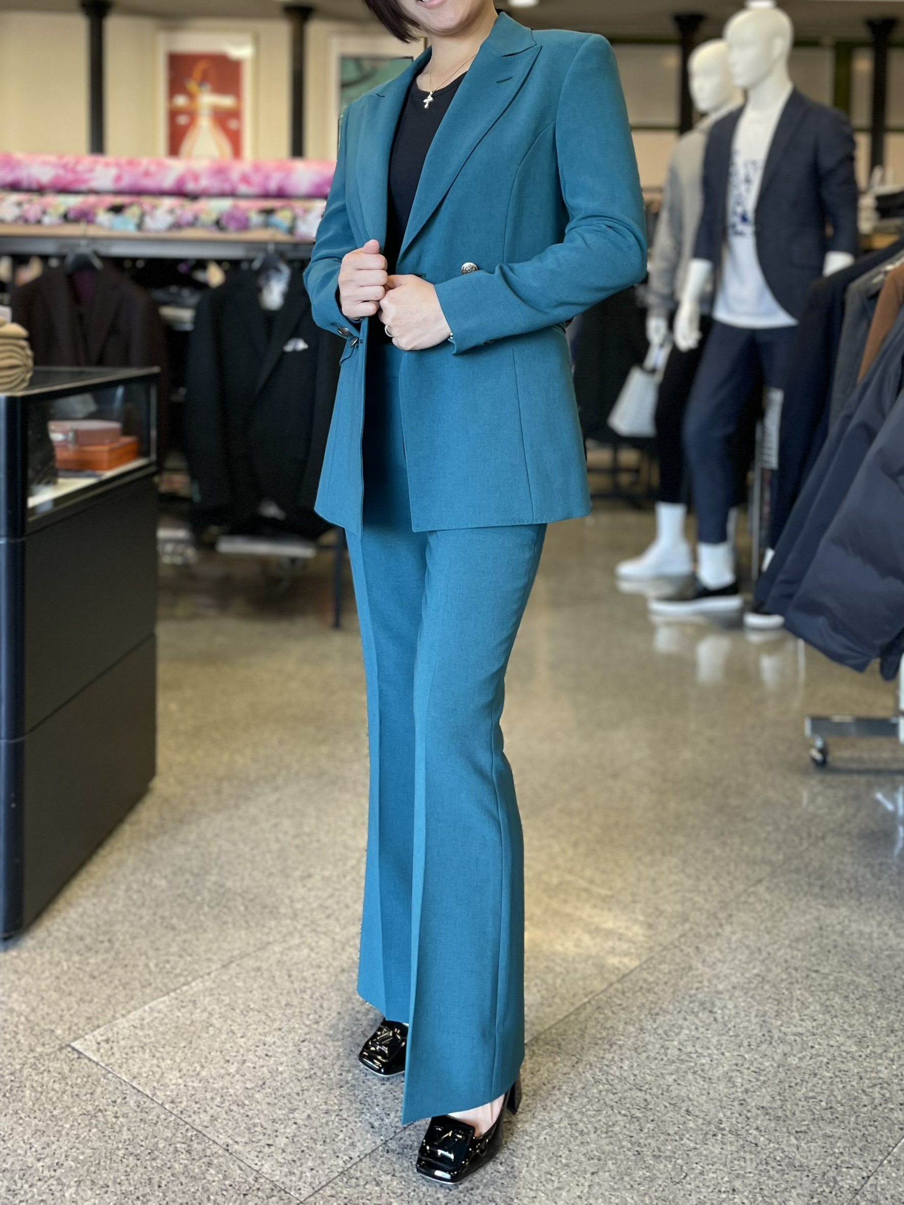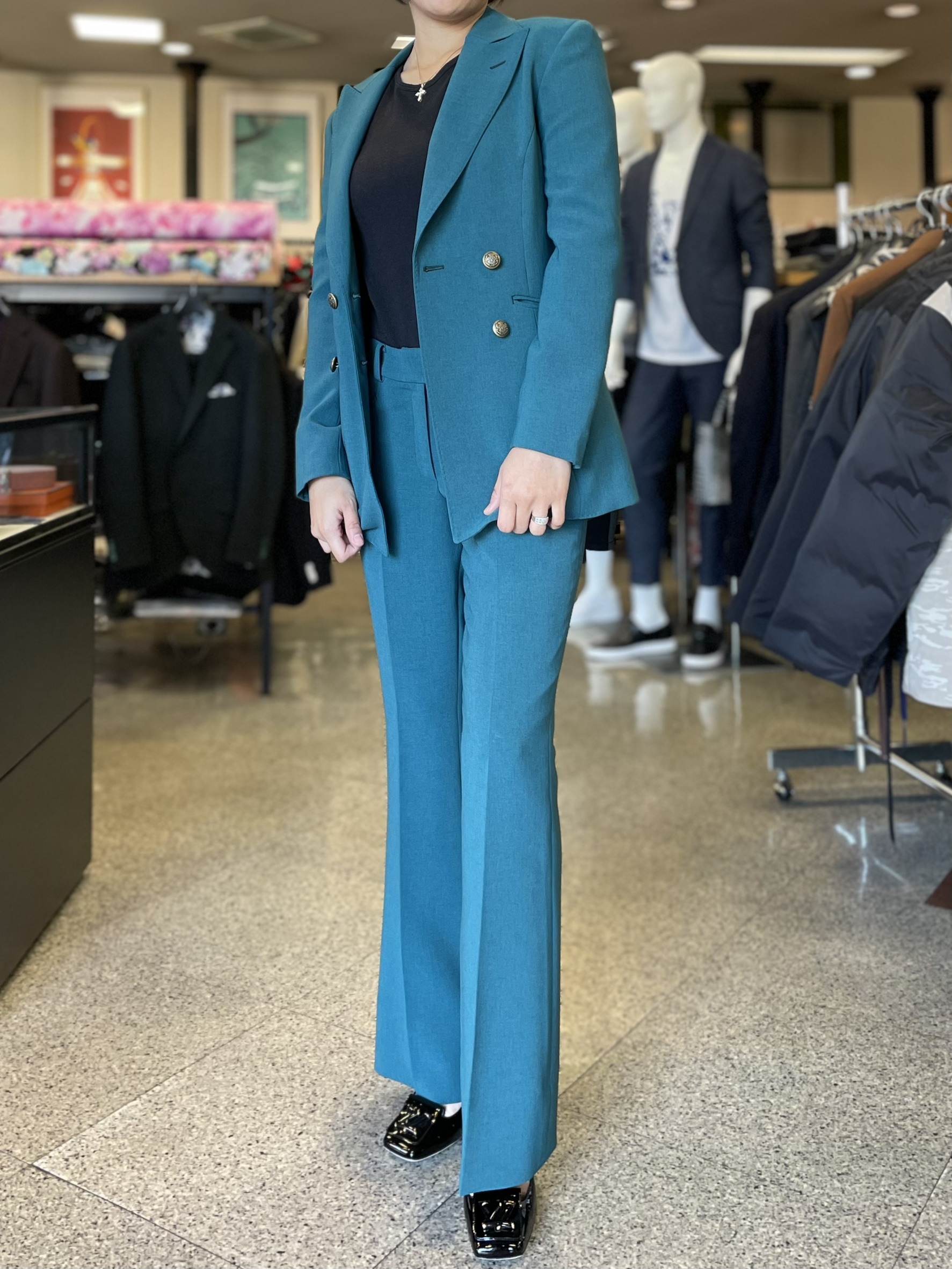 ▶【NO.35】ピーコックグリーン/ダブル×フレアパンツ